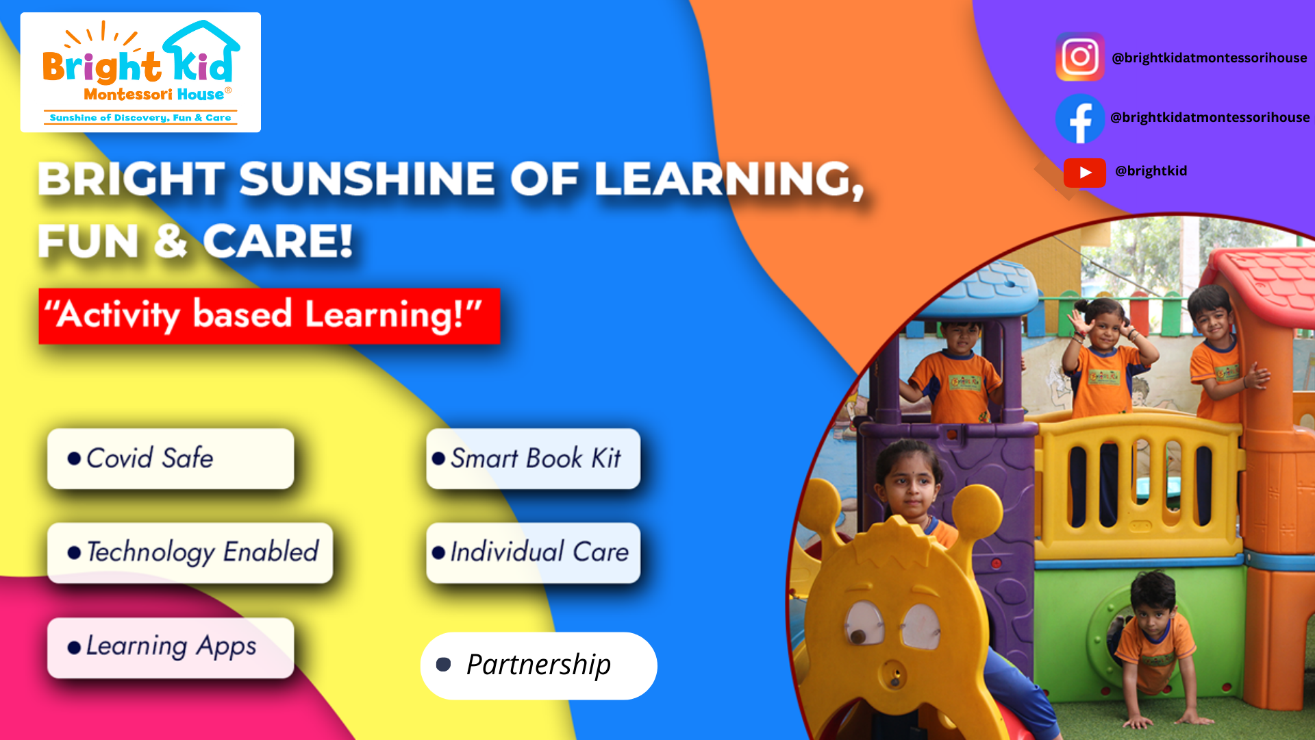 We're a Preschool and Early Childhood Education company with over 16 years of experience, dedicated to 'Harnessing the Genius of Early Childhood' at play school level. Our innovative 'Hands-on…Minds-on' learning approach supports the all-round growth of children in Playgroup, Nursery, LKG, UKG, and Daycare settings.